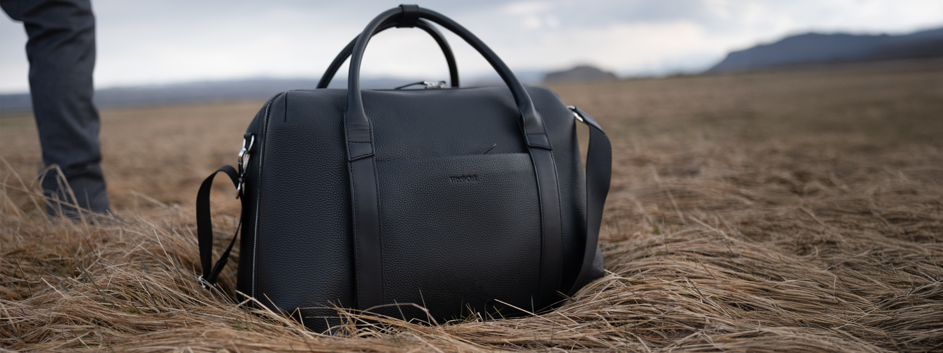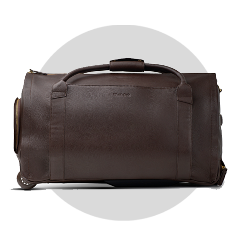 “A handsome leather duffle that unzips into two halves for easy packing, similar to a hard-sided suitcase. This is form and function at their best.”