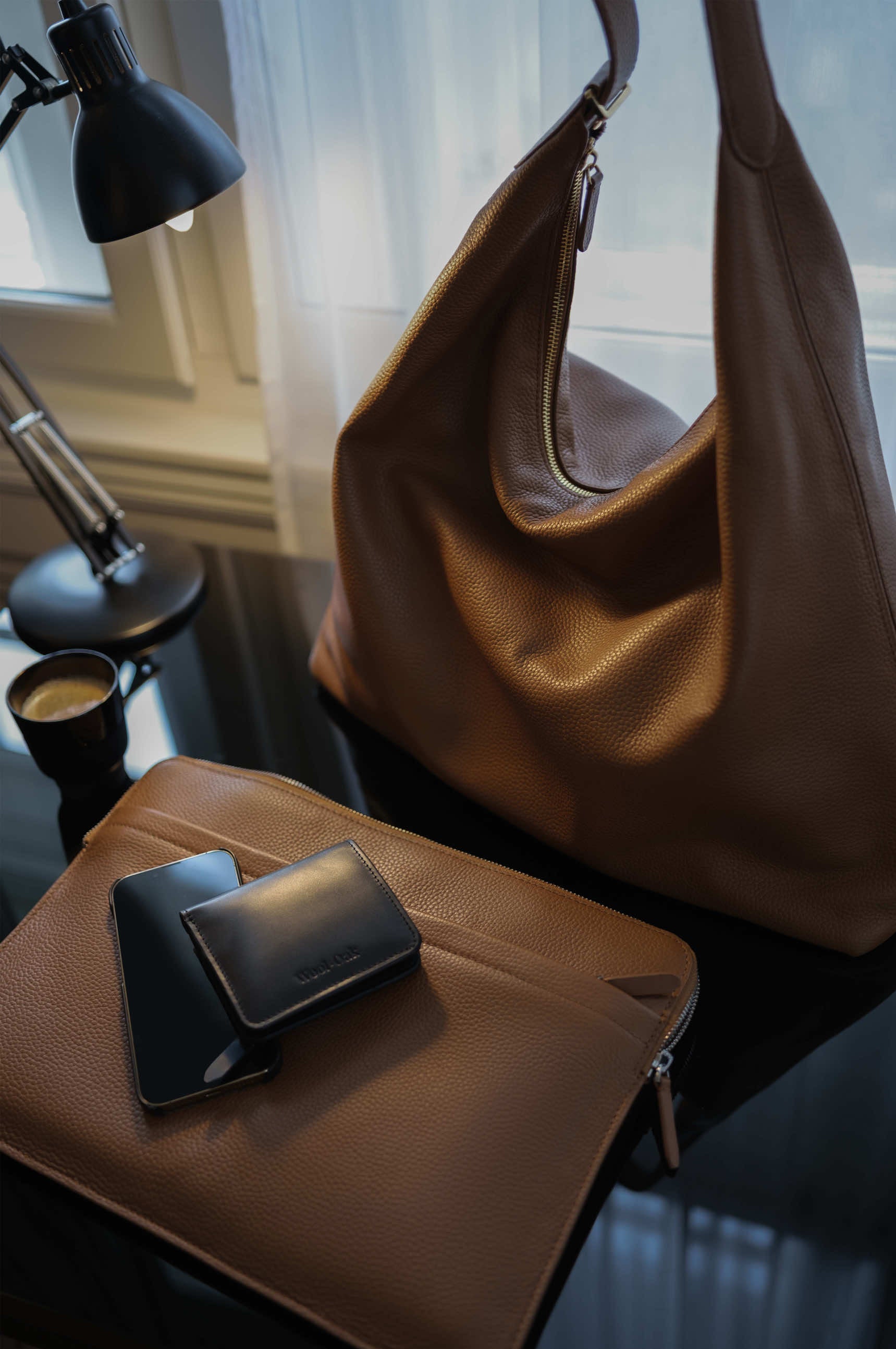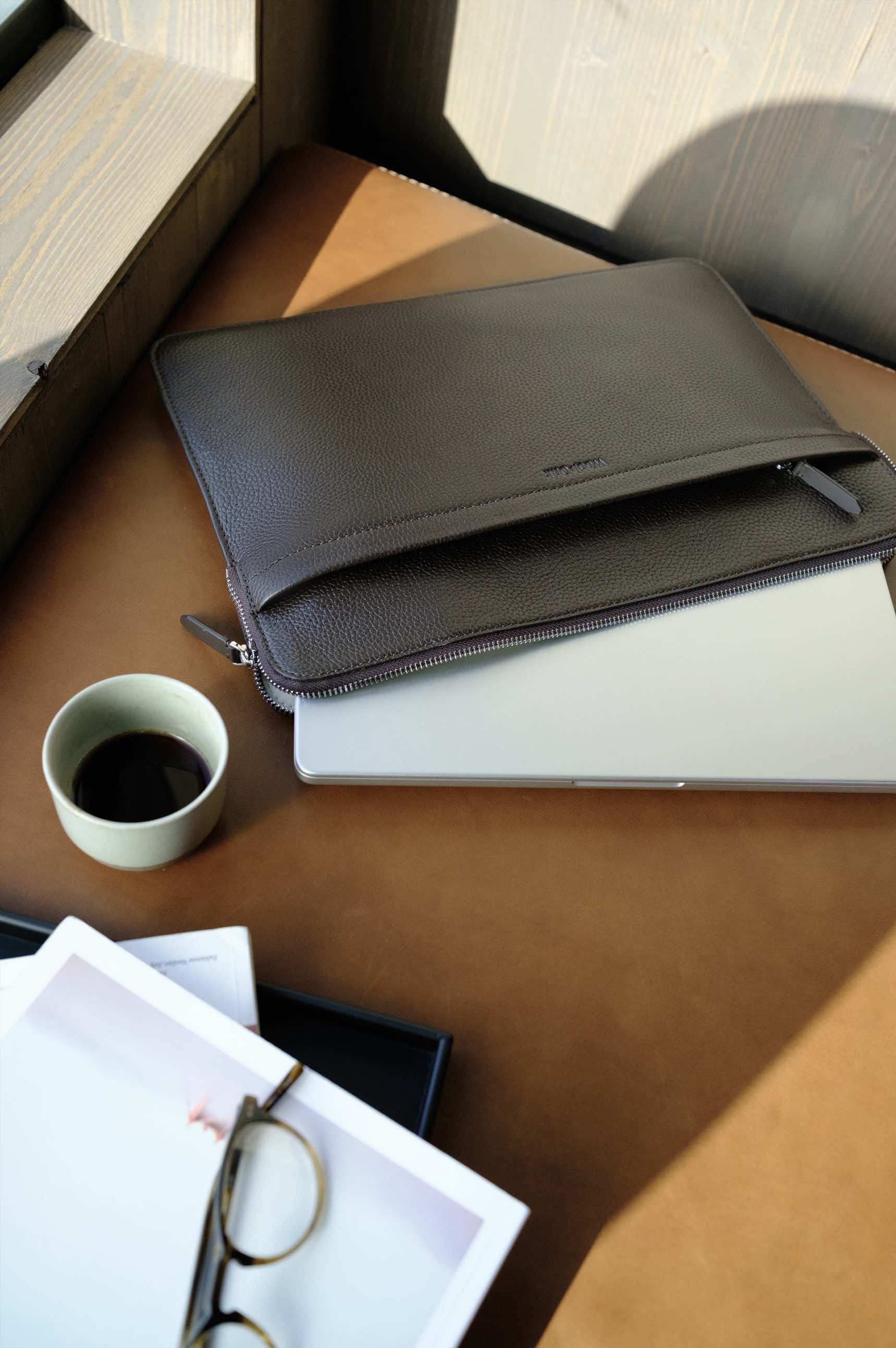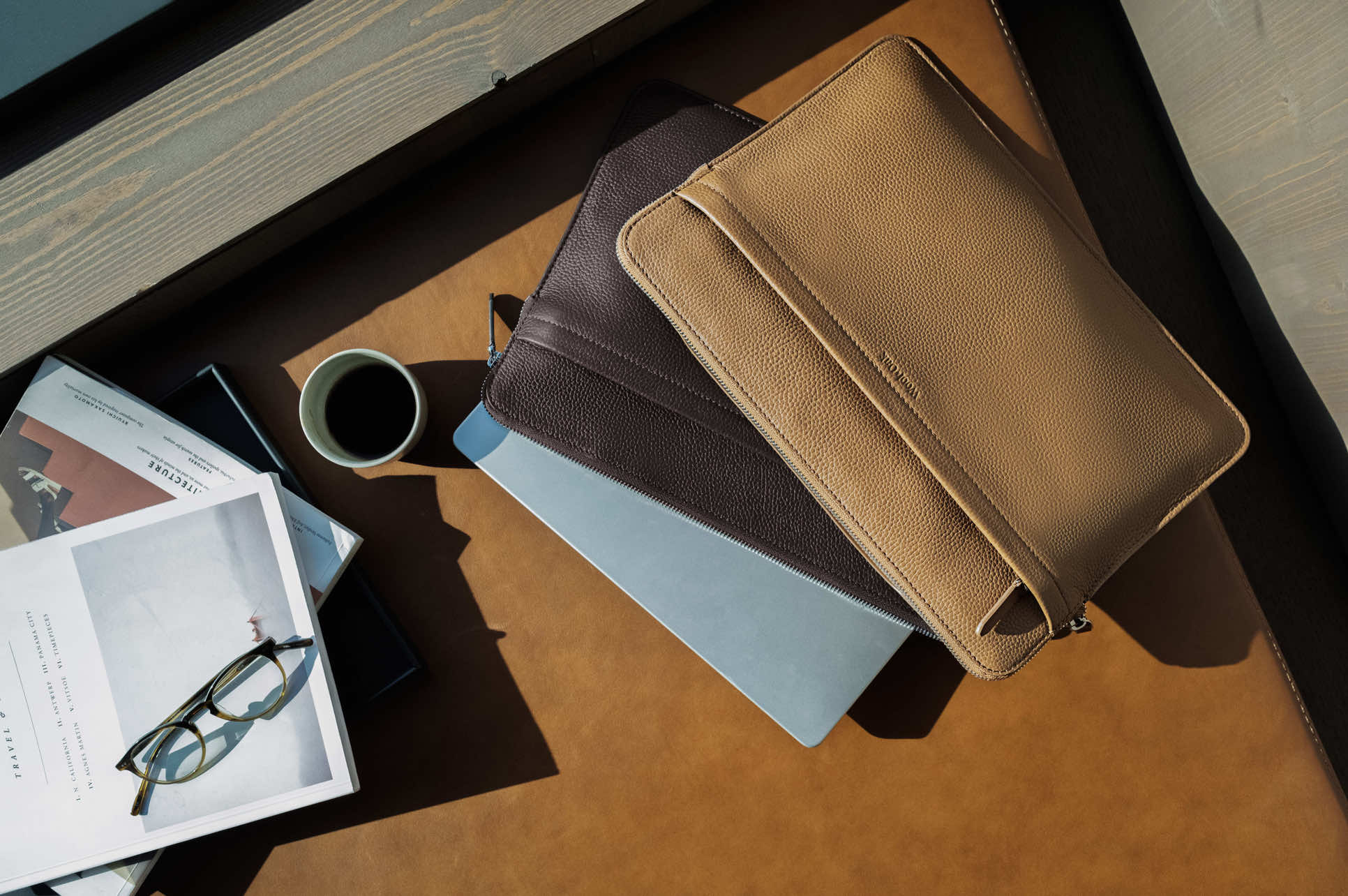 Meet the Porto: A refined laptop sleeve that converts into a shoulder bag. Crafted from full-grain leather with a premium microfiber lining, water-resistant pockets, and a built-in handle. Fits up to a 14” MacBook Pro. Designed with input from modern travelers.