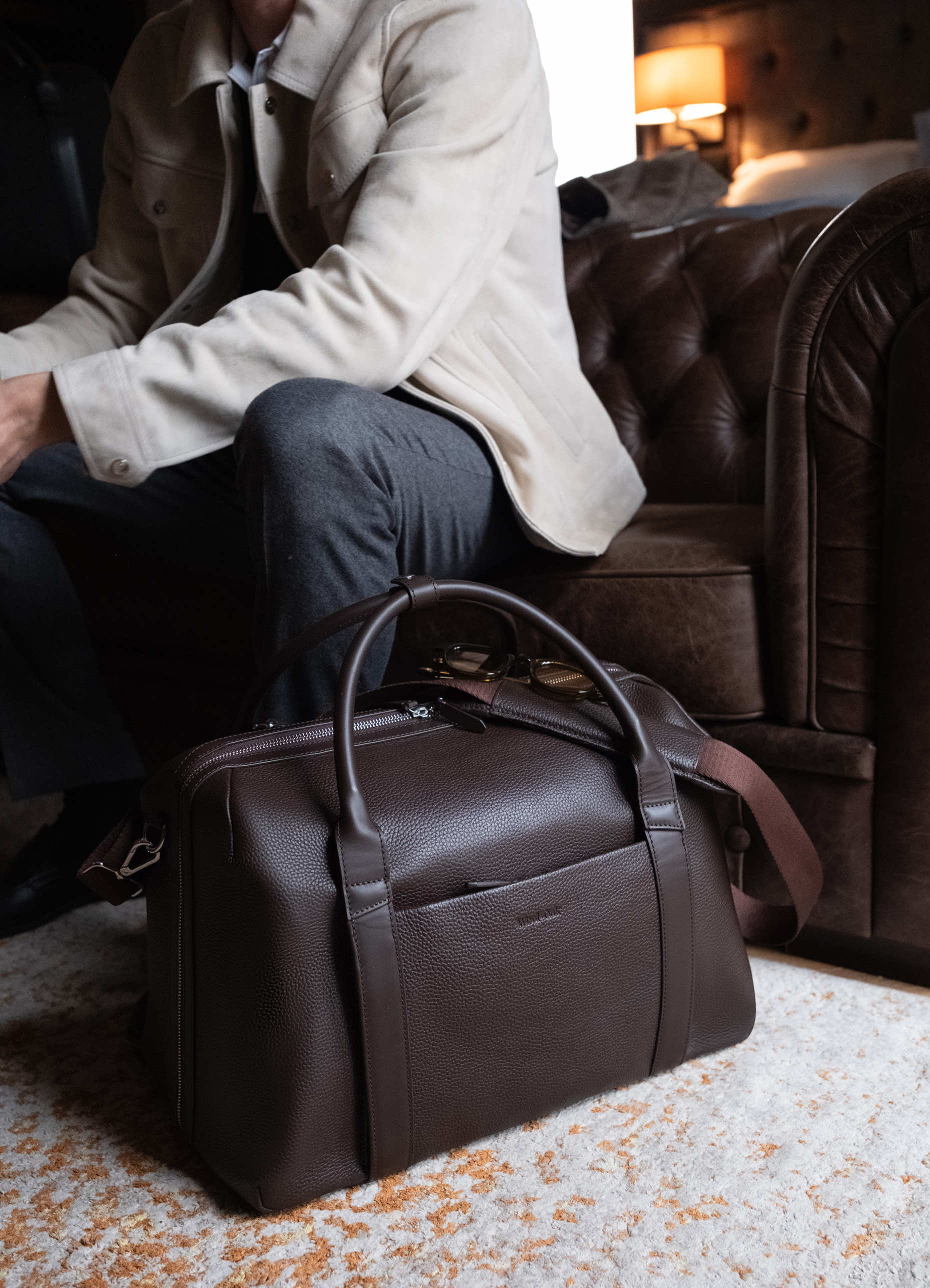 Meet the original duffle-suitcase—often imitated, never matched. We reinvented the duffle by designing it to pack flat like a suitcase, with two structured interior walls that make organization effortless. Sized to be your personal item on any airline, it features a trolley sleeve, 16” laptop pocket, thoughtfully placed compartments, and ultra-smooth zippers. Crafted from a blend of supple Nappa and durable pebble grain leather, this bag carries more than you’d expect—with style that quietly stands apart.